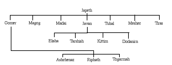 The Japhetic list in the Table of Nations looks like this when set out as a conventional genealogy: